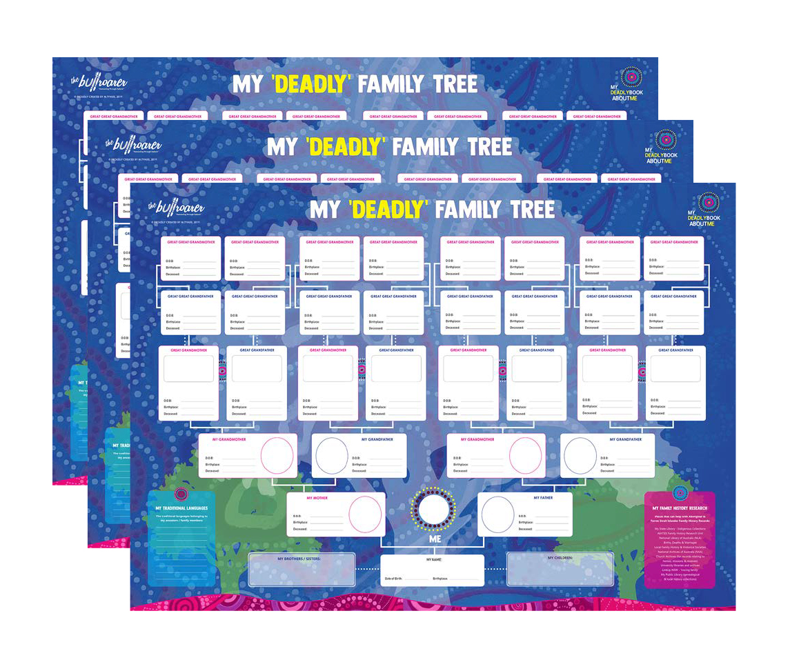 The My Deadly Family Tree A1 Poster is Australia’s only poster for recording the names, birth place and birth date of all of your family members up to your great great great grandparents generation!
